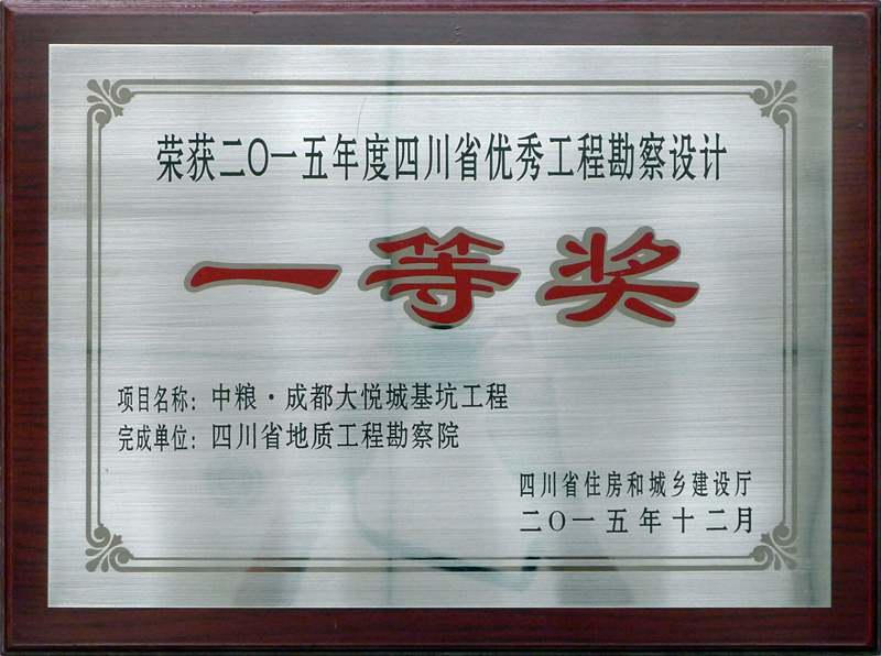 國道213、317線都江堰至汶川公路廟子坪岷江特大橋詳細勘察階段工程地質勘察項目獲得全國優(yōu)秀工程勘察設計行業(yè)獎二等獎,成都水文隊生產(chǎn)科研用房和經(jīng)濟適用房(5幢綜合樓)水源熱泵中央空調工程水文地質勘察、中糧·成都大悅城基坑工程獲得省工程勘察設計“四優(yōu)”一等獎,歐尚購物中心工程勘察、松潘縣川主寺鎮(zhèn)第二自來水廠水源地綜合水文地質勘察報告(山巴——川盤橋段)獲得省工程勘察設計“四優(yōu)”二等獎,潤慶·山予城一期巖土工程勘察報告獲省工程勘察設計“四優(yōu)”三等獎。