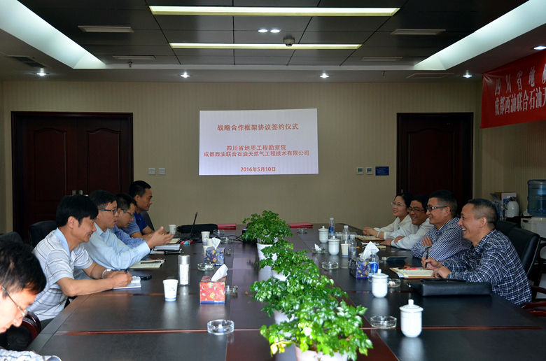 5月10日,在我院321會議室舉行了四川省地質(zhì)工程勘察院與成都西油聯(lián)合石油天然氣工程技術(shù)有限公司戰(zhàn)略合作框架協(xié)議簽署儀式。院長安世澤、黨委書記陽光輝、水文地質(zhì)工程公司總經(jīng)理張恒,成都西油聯(lián)合石油天然氣工程技術(shù)有限公司總裁牟德剛、技術(shù)總監(jiān)廖忠會等出席了簽約儀式。