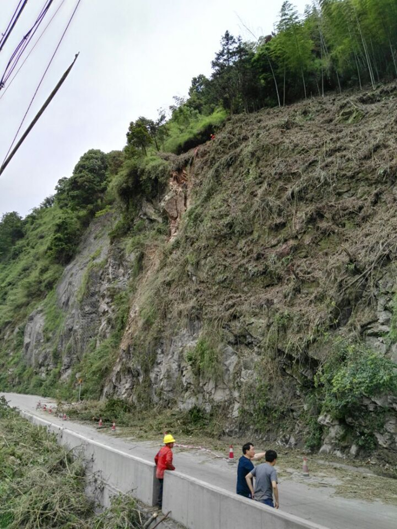 17日18點40分,現場監測人員發現崩塌裂縫變形加大,并伴有巖石響聲,隨時有垮塌的可能。由于下方公路仍在通行,情況十分緊急,項目組立即增派3人封路并值守交通,并在第一時間將現場情況告知雅安市交通運輸局和公路局,建議當晚管制交通,禁止通行,防止跨塌造成安全事故。19點,雅安市交通運輸局、天全縣交通運輸局迅速組織路政、交警等部門對月亮灣邊坡崩塌路段進行應急交通管制。18日凌晨3點35分,月亮灣邊坡發生垮塌,垮塌方量約150方,道路再次中斷。由于項目組成功預警,交通主管單位處置及時、措施得當,垮塌未造成人員傷亡及財產損失。