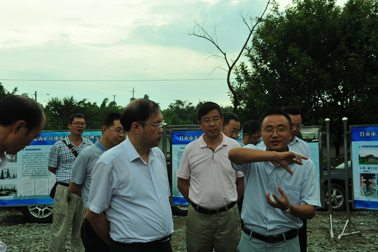 8月4日,四川省國土資源廳黨委書記、廳長楊冬生來到省地勘院承擔的自貢大安區鹽鹵礦山地質環境綜合治理工程項目現場,督導檢查工程實施情況。該項目針對主城區附近的礦山地質環境進行綜合治理,這在全國尚屬首例。