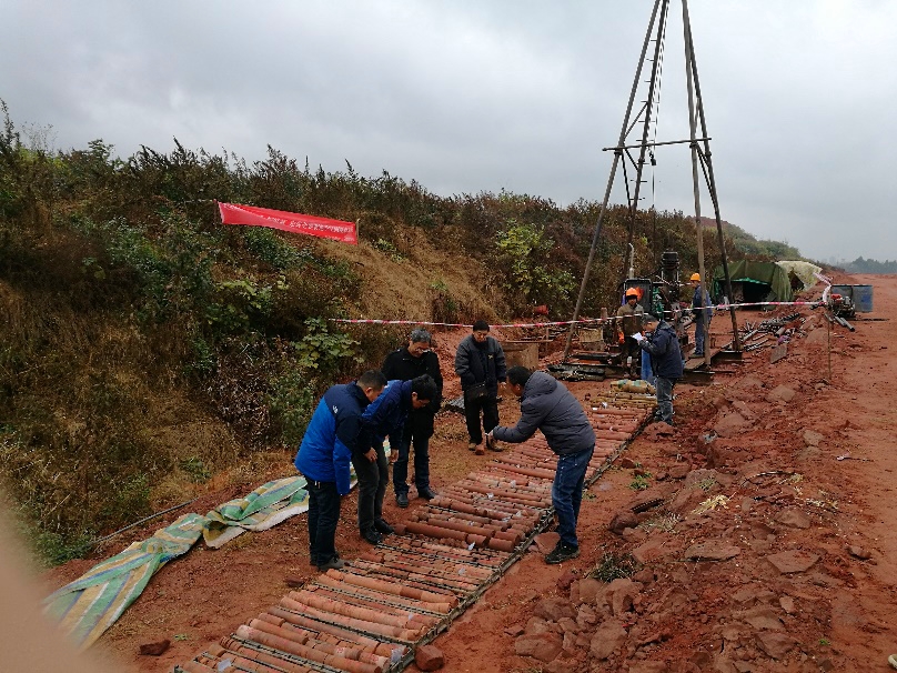 隨后,錢(qián)江澎、劉宗祥一行對(duì)項(xiàng)目2018年先期啟動(dòng)塊的四個(gè)鉆孔進(jìn)行了質(zhì)量檢查。通過(guò)對(duì)現(xiàn)場(chǎng)鉆探點(diǎn)的全面檢查,錢(qián)總強(qiáng)調(diào)一是要高度重視生產(chǎn)施工過(guò)程的安全問(wèn)題,加強(qiáng)項(xiàng)目規(guī)范化管理;二是在野外調(diào)查過(guò)程中要確定填圖分組、分段標(biāo)志,統(tǒng)一風(fēng)化程度判別標(biāo)志;三是鉆探工作需標(biāo)準(zhǔn)化編錄格式,及時(shí)采集巖土樣,同時(shí)對(duì)特殊巖芯樣可采用特寫(xiě)、小視頻記錄方式保存。