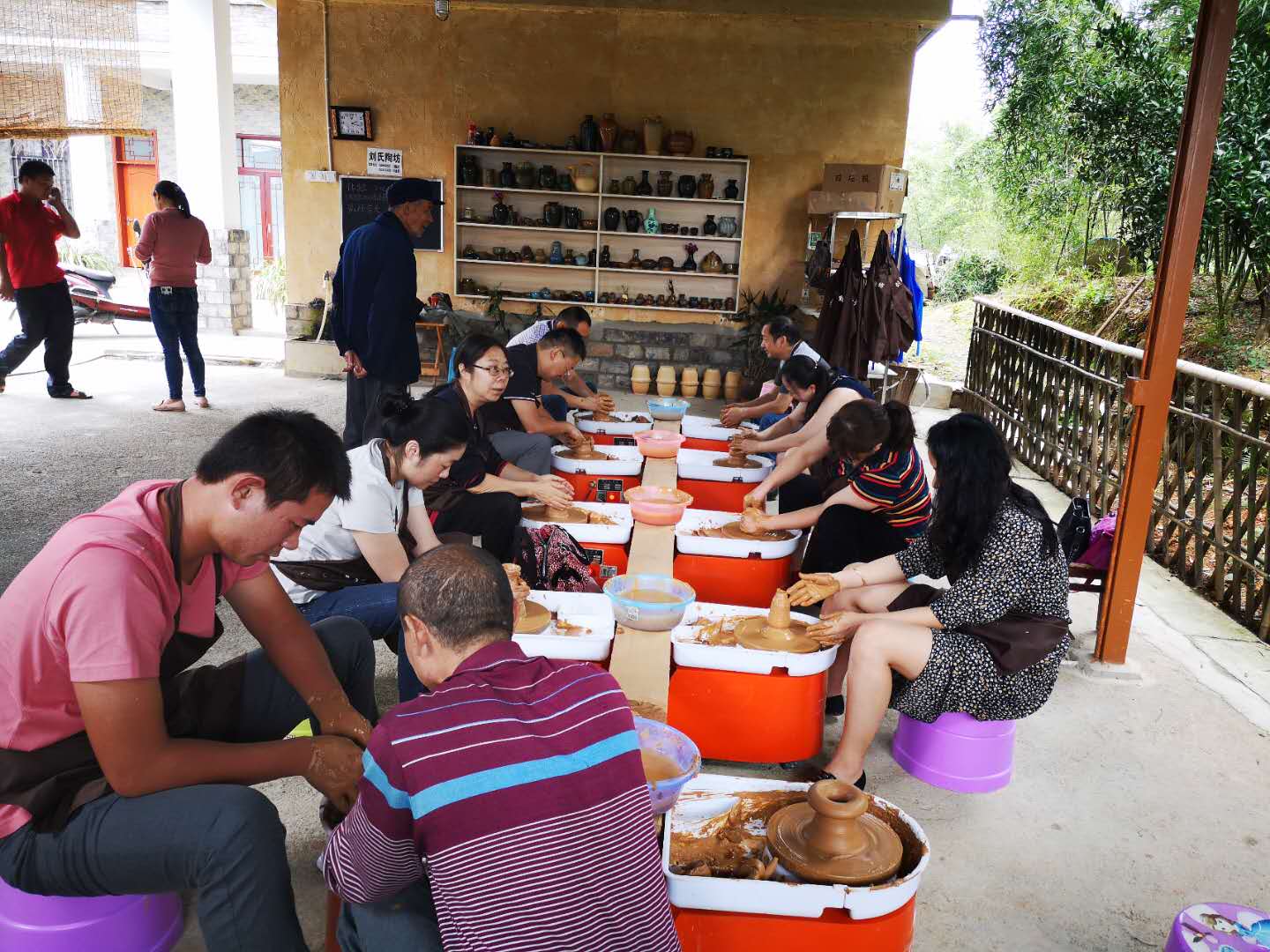 大家紛紛在制陶中加入自己的個性化元素,一個多小時后有十幾個個性化的泥坯成型,再經過上色和燒制,一個個帶著感受和回憶的紀念品做成了。